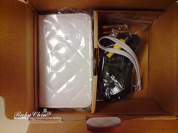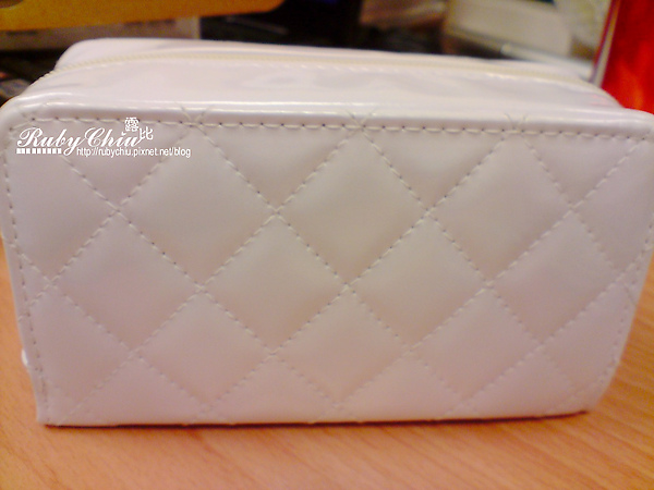 原廠送的華麗綾格紋包...我是買白色...喜歡珍珠白的質感。
