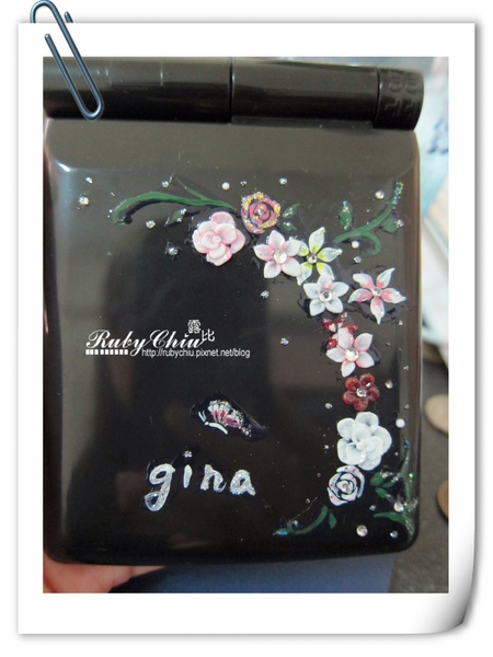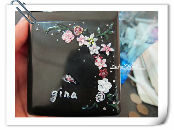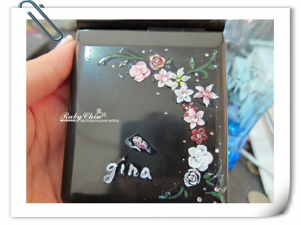 做完後,笨淳就說我的Gina寫的好醜,然又說,g幹嘛小寫...都畫好了,也上uv了。 不能改了啦~~ (看來我要練字了!)