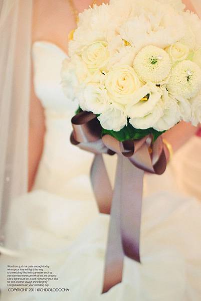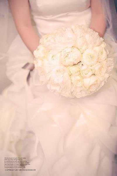 所以馬上更換為白牡丹加白玫瑰的捧花!同樣...水鑽也不能少啦~~