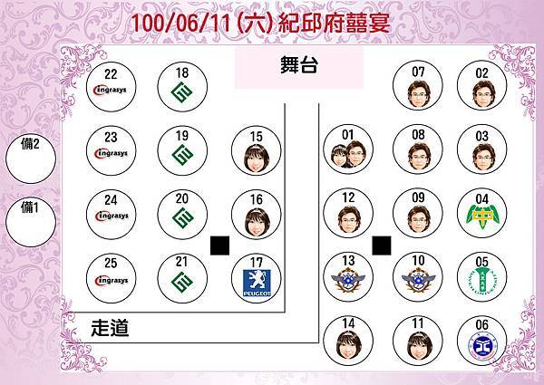 後來我前一天再去煙波看到業務EMMA幫我輸出的圖,超可愛,而且~~跟其他新人的一比~飯店公版就輸我的桌位表啦!