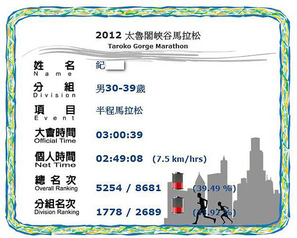 原本很擔心他的體力跑不完21公里,還好順利跑完嚕!