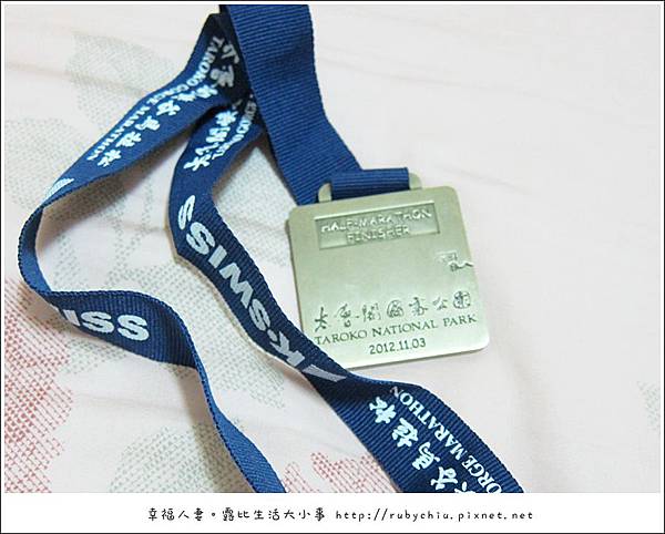 再來說說爸比跑太馬唄!! 呼!我一直很擔心他跑不完,然後這次也是我自結婚後,第一次跟爸比分開睡耶!