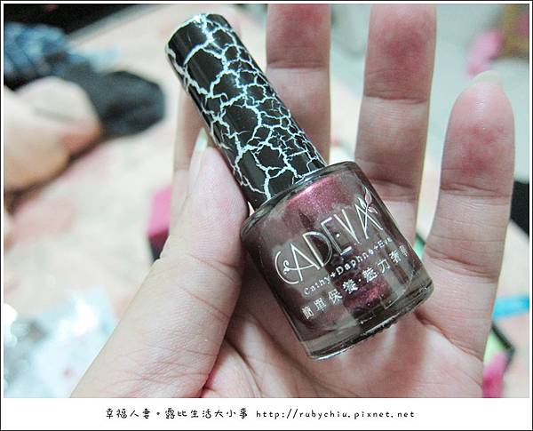 爆裂紋的指甲油,建議要先上個底色,這樣裂開時,底色就會跳出來。