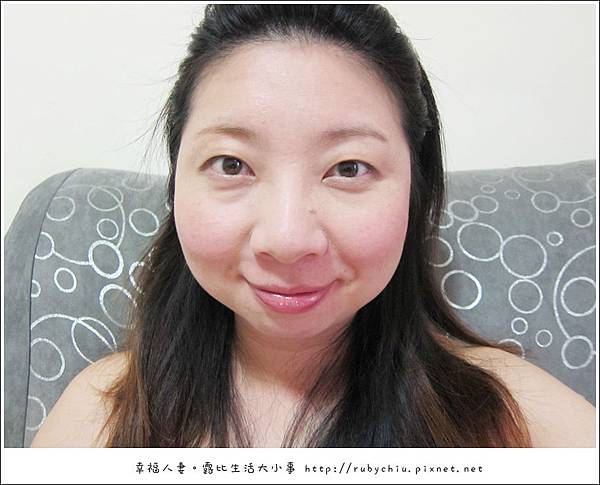 上完妝後的妝感啦!水蜜桃紅擦起來氣色好棒喔!